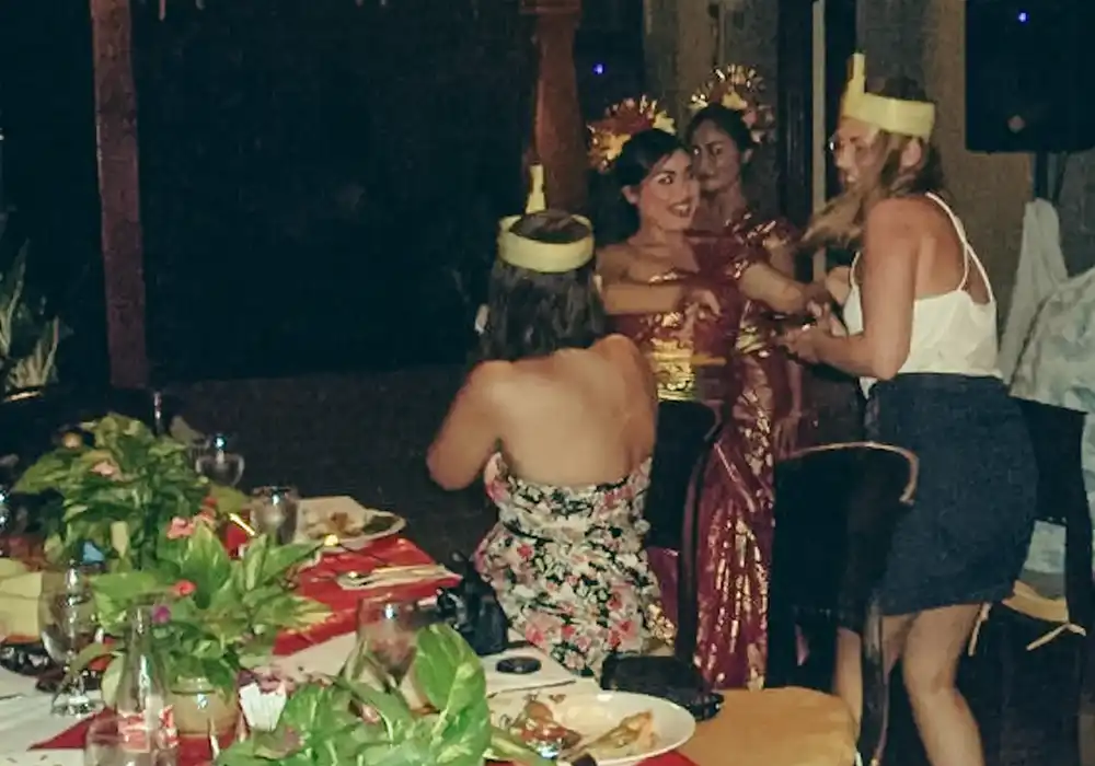 Within an era where Balinese women in guiding roles were scarce, her unwavering confidence was shining brightly. United by their love for sharing Balinese culture, they exchanged vows in 1980, embarking on an extraordinary journey together. For the next eight years, hand in hand, they painted vivid portraits of Bali's traditions and customs, weaving a tapestry of experiences that still resonate today.